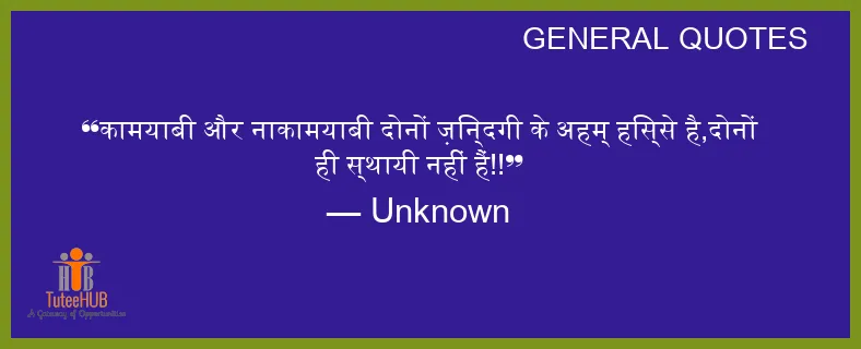 कामयाबी और नाकामयाबी दोनों ज़िन्दगी के अहम् हिस्से है,दोनों ही स्थायी नहीं हैं!!