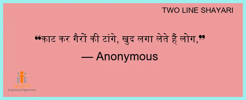 काट कर गैरों की टांगे, खुद लगा लेते हैं लोग,