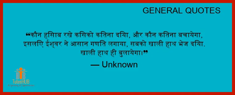 कौन हिसाब रखे किसको कितना दिया, और कौन कितना बचायेगा, इसलिए ईश्वर ने आसान गणित लगाया, सबको खाली हाथ भेज दिया. खाली हाथ ही बुलायेगा।