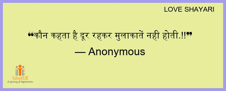 कौन कहता है दूर रहकर मुलाकातें नही होती.!!