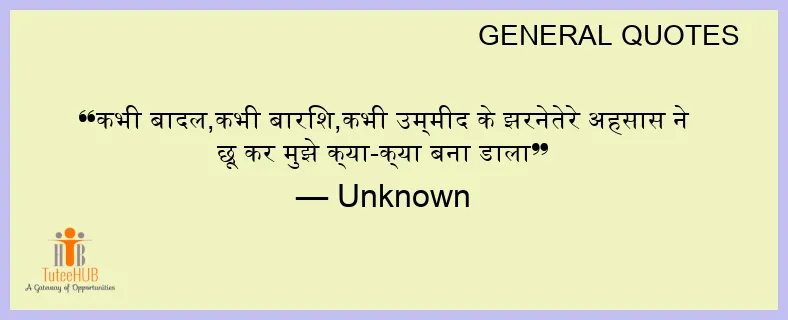कभी बादल,कभी बारिश,कभी उम्मीद के झरनेतेरे अहसास ने छू कर मुझे क्या-क्या बना डाला