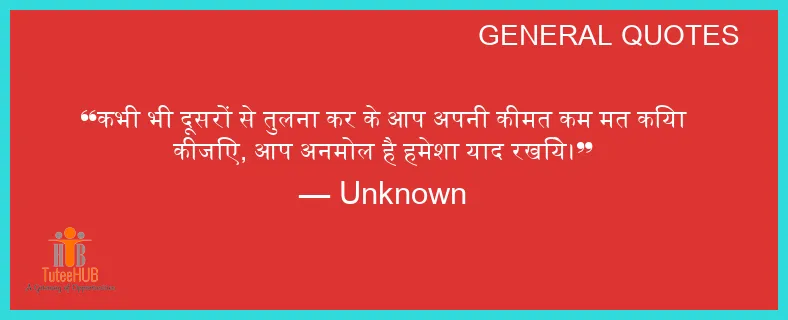 कभी भी दूसरों से तुलना कर के आप अपनी कीमत कम मत किया कीजिए, आप अनमोल है हमेशा याद रखिये।