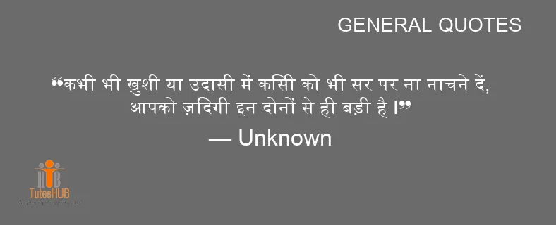 कभी भी ख़ुशी या उदासी में किसी को भी सर पर ना नाचने दें, आपको ज़िंदगी इन दोनों से ही बड़ी है I