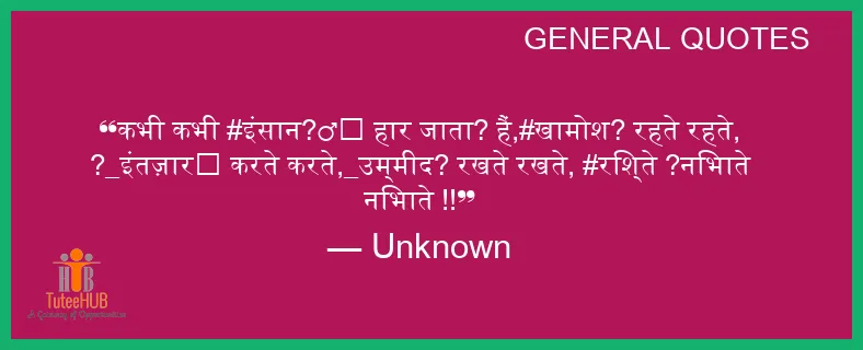 कभी कभी #इंसान?‍♂️ हार जाता? हैं,#खामोश? रहते रहते, ?_इंतज़ार⏳ करते करते,_उम्मीद? रखते रखते, #रिश्ते ?निभाते निभाते !!