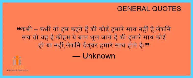 कभी – कभी तो हम कहते हैं की कोई हमारे साथ नहीं है,लेकिन सच तो यह है कीहम ये बात भूल जाते है की हमारे साथ कोई हो या नहीं,लेकिन ईश्वर हमारे साथ होते है।