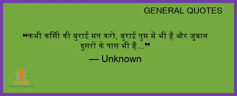 कभी किसी की बुराई मत करो, बुराई तुम में भी हैं और जुबान दुसरों के पास भी हैं…