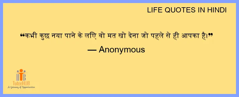 कभी कुछ नया पाने के लिए वो मत खो देना जो पहले से ही आपका है।