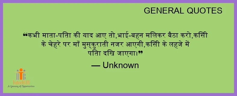 कभी माता-पिता की याद आए तो,भाई-बहन मिलकर बैठा करो,किसी के चेहरे पर माँ मुस्कुराती नजर आएगी,किसी के लहजे में पिता दिख जाएगा।