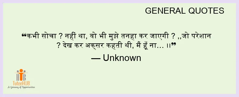 कभी सोचा ? नहीं था, वो भी मुझे तनहा कर जाएगी ? ,,जो परेशान ? देख कर अक्सर कहती थी, मैं हूँ ना… ।।