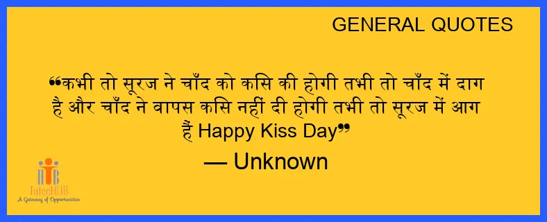 कभी तो सूरज ने चाँद को किस की होगी तभी तो चाँद में दाग है और चाँद ने वापस किस नहीं दी होगी तभी तो सूरज में आग हैं Happy KISS Day