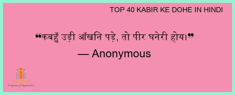 कबहुँ उड़ी ऑखिन पड़े, तो पीर घनेरी होय।