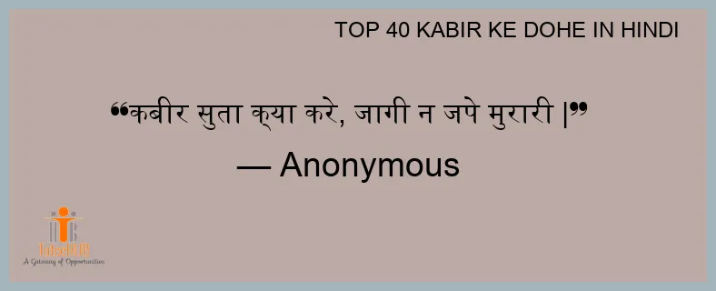 कबीर सुता क्या करे, जागी न जपे मुरारी |