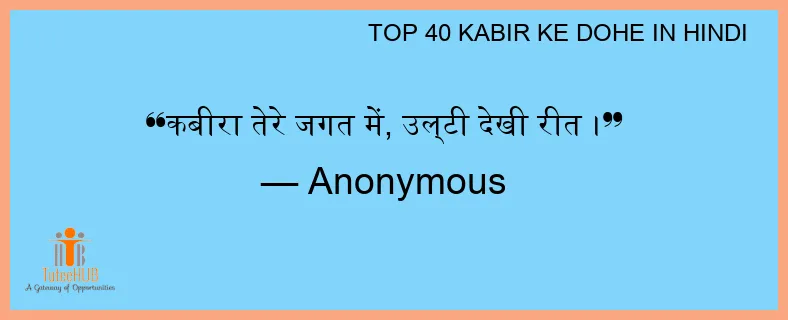 कबीरा तेरे जगत में, उल्टी देखी रीत ।