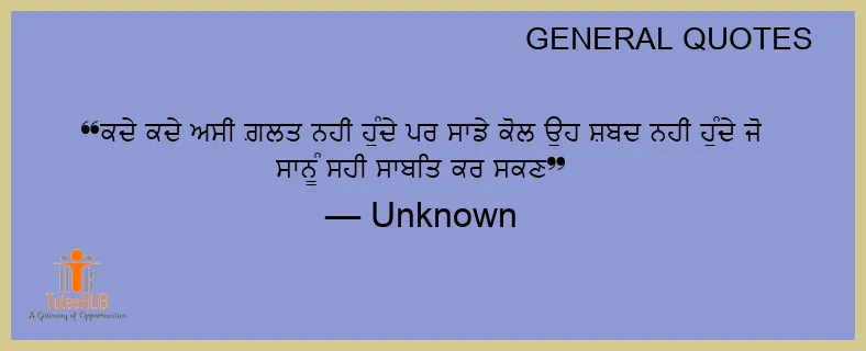 ਕਦੇ ਕਦੇ ਅਸੀਂ ਗ਼ਲਤ ਨਹੀਂ ਹੁੰਦੇ ਪਰ ਸਾਡੇ ਕੋਲ ਉਹ ਸ਼ਬਦ ਨਹੀਂ ਹੁੰਦੇ ਜੋ ਸਾਨੂੰ ਸਹੀ ਸਾਬਿਤ ਕਰ ਸਕਣ