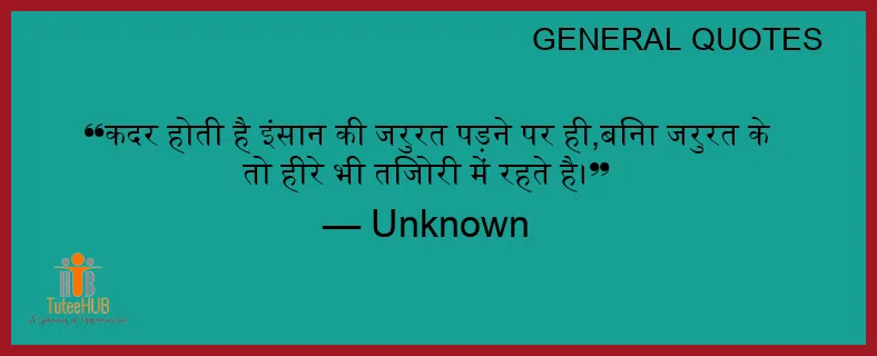 कदर होती है इंसान की जरुरत पड़ने पर ही,बिना जरुरत के तो हीरे भी तिजोरी में रहते है।