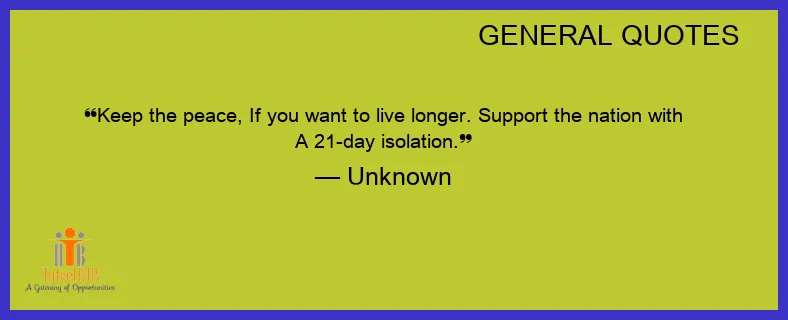 Keep the PEACE, If you want to live longer. SUPPORT the NATION with A 21-day ISOLATION.