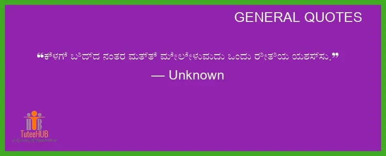 ಕೆಳಗೆ ಬಿದ್ದ ನಂತರ ಮತ್ತೆ ಮೇಲೇಳುವುದು ಒಂದು ರೀತಿಯ ಯಶಸ್ಸು.