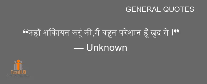 कहाँ शिकायत करूं की,मैं बहुत परेशान हूँ खुद से I