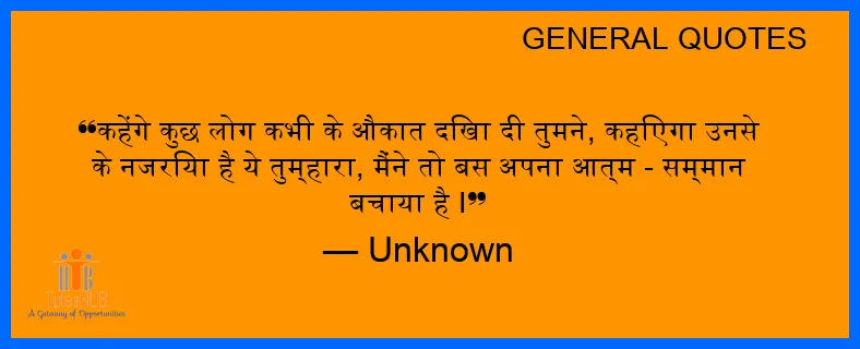 कहेंगे कुछ लोग कभी के औकात दिखा दी तुमने, कहिएगा उनसे के नजरिया है ये तुम्हारा, मैंने तो बस अपना आत्म - सम्मान बचाया है I