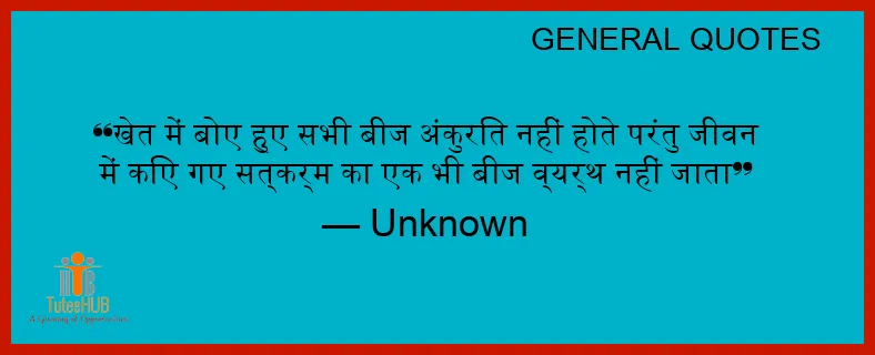 खेत में बोए हुए सभी बीज अंकुरित नहीं होते परंतु जीवन में किए गए सत्कर्म का एक भी बीज व्यर्थ नहीं जाता