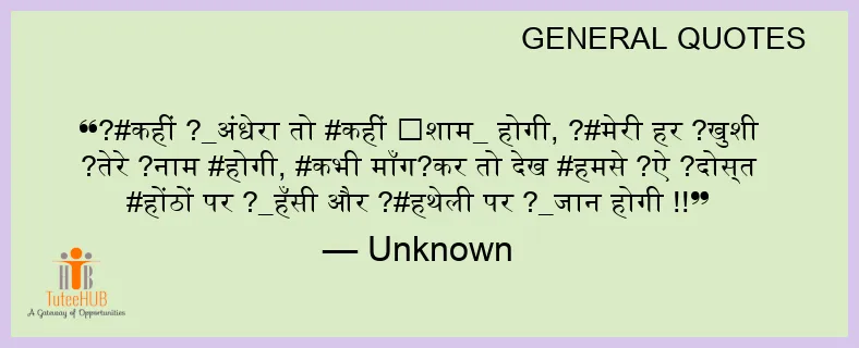 ?#कहीं ?_अंधेरा तो #कहीं ⛅शाम_ होगी, ?#मेरी हर ?खुशी ?तेरे ?नाम #होगी, #कभी माँग?कर तो देख #हमसे ?ऐ ?दोस्त #होंठों पर ?_हँसी और ?#हथेली पर ?_जान होगी !!
