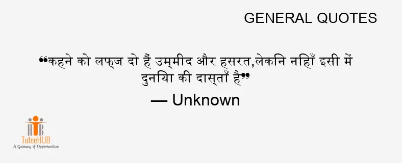 कहने को लफ्ज दो हैं उम्मीद और हसरत,लेकिन निहाँ इसी में दुनिया की दास्ताँ है