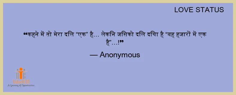 कहने में तो मेरा दिल “एक” है… लेकिन जिसको दिल दिया है “वह हजारों में एक है”…!