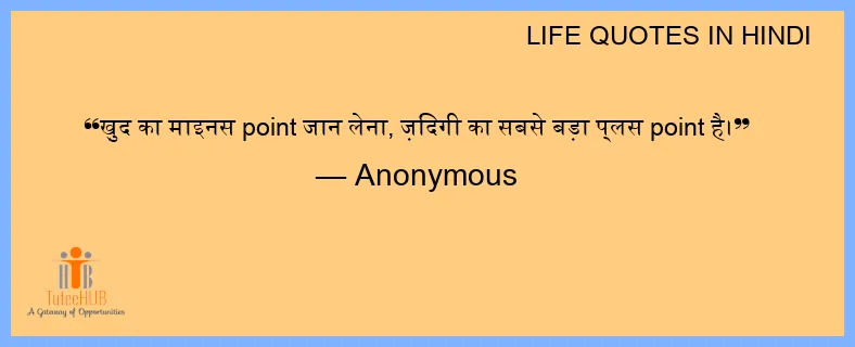 ख़ुद का माइनस point जान लेना, ज़िंदगी का सबसे बड़ा प्लस point है।