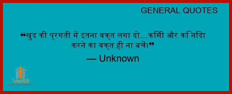 खुद की प्रगती में इतना वक्त लगा दो…किसी और कि निंदा करने का वक्त ही ना बचें।