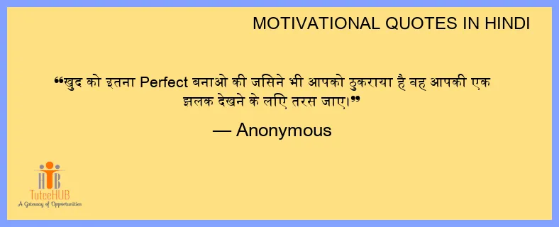 खुद को इतना Perfect बनाओ की जिसने भी आपको ठुकराया है वह आपकी एक झलक देखने के लिए तरस जाए।