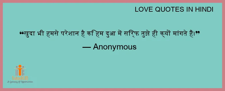 खुदा भी हमसे परेशान है कि हम दुआ में सिर्फ तुझे ही क्यों मांगते हैं।