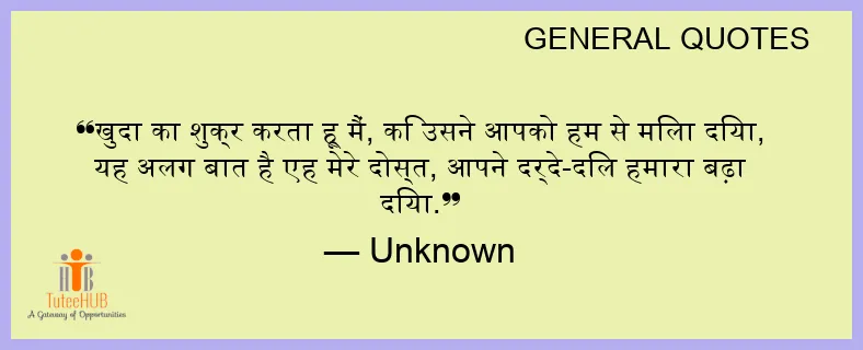 खुदा का शुक्र करता हू मैं, कि उसने आपको हम से मिला दिया, यह अलग बात है एह मेरे दोस्त, आपने दर्दे-दिल हमारा बढ़ा दिया.