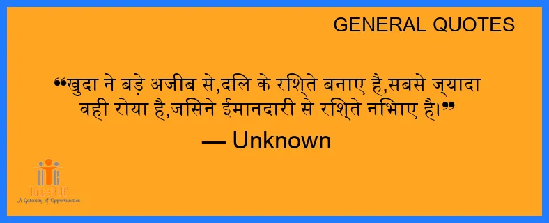 खुदा ने बड़े अजीब से,दिल के रिश्ते बनाए है,सबसे ज्यादा वही रोया है,जिसने ईमानदारी से रिश्ते निभाए है।