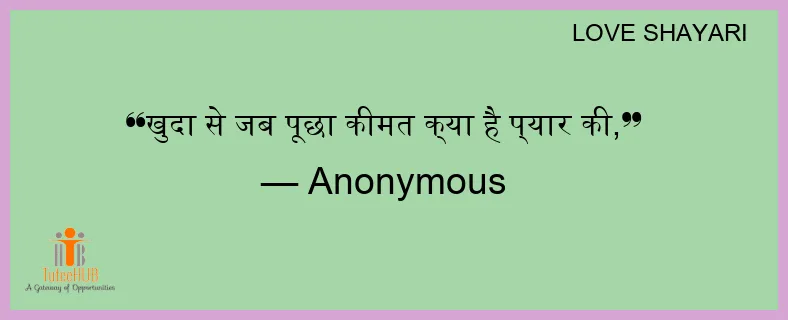 खुदा से जब पूछा कीमत क्या है प्यार की,