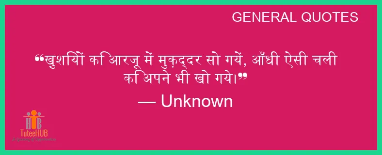 ख़ुशियों कि आरज़ू में मुक़द्दर सो गयें, आँधी ऐसी चली कि अपने भी खो गये।