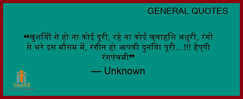 खुशियों से हो ना कोई दूरी, रहे ना कोई ख्वाहिश अधुरी, रंगों से भरे इस मौसम में, रंगीन हो आपकी दुनिया पूरी…!!! हैप्पी रंगपंचमी