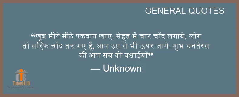 खूब मीठे मीठे पकवान खाए, सेहत में चार चाँद लगाये, लोग तो सिर्फ चाँद तक गए हैं, आप उस से भी ऊपर जाये. शुभ धनतेरस की आप सब को बधाईयाँ