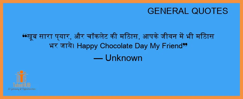 खूब सारा प्यार, और चॉकलेट की मिठास, आपके जीवन में भी मिठास भर जाये। HAPPY Chocolate Day My Friend