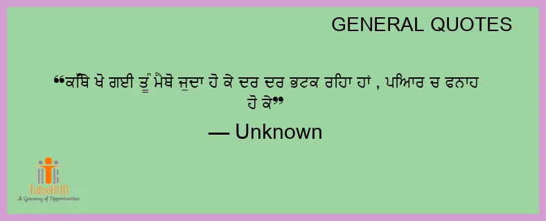 ਕਿੱਥੇ ਖੋ ਗਈ ਤੂੰ ਮੈਥੋਂ ਜੁਦਾ ਹੋ ਕੇ ਦਰ ਦਰ ਭਟਕ ਰਿਹਾ ਹਾਂ , ਪਿਆਰ ਚ ਫਨਾਹ ਹੋ ਕੇ