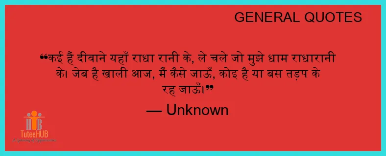 कई हैं दीवाने यहाँ राधा रानी के, ले चले जो मुझे धाम राधारानी के। जेब है खाली आज, मैं कैसे जाऊँ, कोइ है या बस तड़प के रह जाऊँ।