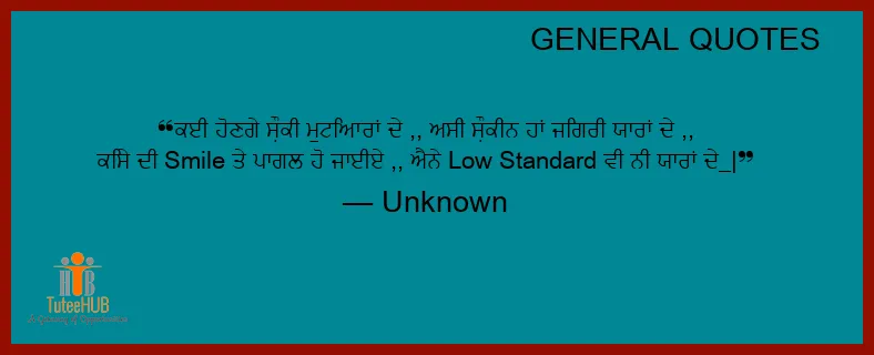 ਕਈ ਹੋਣਗੇ ਸ਼ੌਕੀ ਮੁਟਿਆਰਾਂ ਦੇ ,, ਅਸੀਂ ਸ਼ੌਕੀਨ ਹਾਂ ਜਿਗਰੀ ਯਾਰਾਂ ਦੇ ,, ਕਿਸੇ ਦੀ Smile ਤੇ ਪਾਗਲ ਹੋ ਜਾਈਏ ,, ਐਨੇ LOW Standard ਵੀ ਨੀ ਯਾਰਾਂ ਦੇ_|