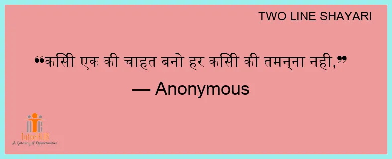 किसी एक की चाहत बनो हर किसी की तमन्ना नही,