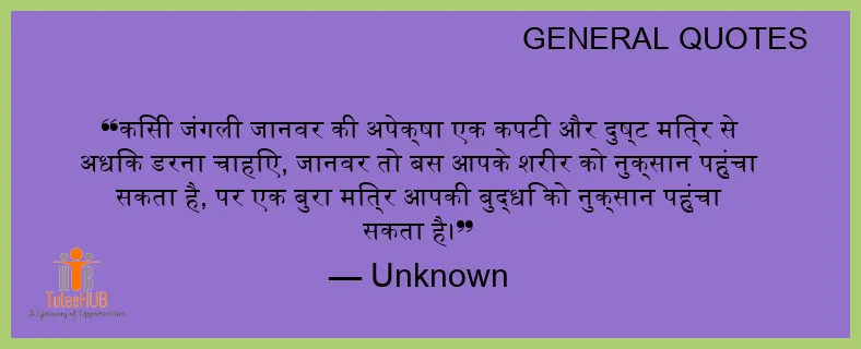 किसी जंगली जानवर की अपेक्षा एक कपटी और दुष्ट मित्र से अधिक डरना चाहिए, जानवर तो बस आपके शरीर को नुक्सान पहुंचा सकता है, पर एक बुरा मित्र आपकी बुद्धि को नुक्सान पहुंचा सकता है।
