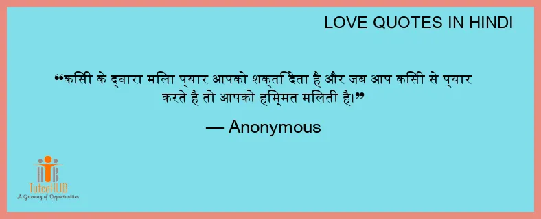 किसी के द्वारा मिला प्यार आपको शक्ति देता है और जब आप किसी से प्यार करते है तो आपको हिम्मत मिलती है।