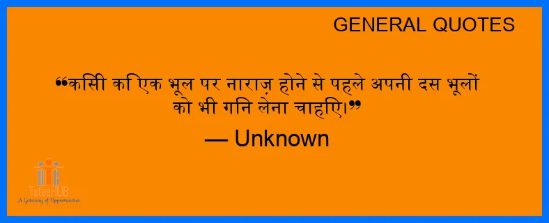 किसी कि एक भूल पर नाराज़ होने से पहले अपनी दस भूलों को भी गिन लेना चाहिए।