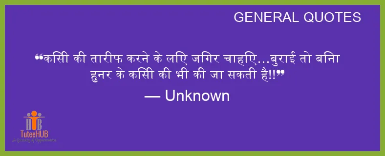 किसी की तारीफ करने के लिए जिगर चाहिए…बुराई तो बिना हुनर के किसी की भी की जा सकती है!!
