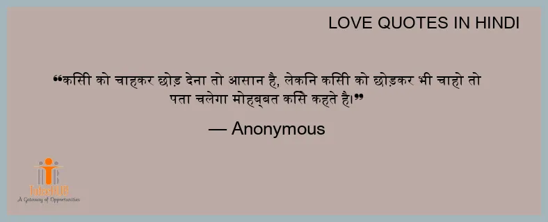 किसी को चाहकर छोड़ देना तो आसान है, लेकिन किसी को छोड़कर भी चाहो तो पता चलेगा मोहब्बत किसे कहते है।