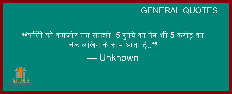 किसी को कमज़ोर मत समझो। 5 रुपये का पेन भी 5 करोड़ का चेक लिखने के काम आता है..