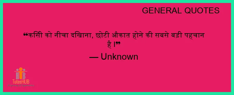 किसी को नीचा दिखाना, छोटी औकात होने की सबसे बड़ी पहचान है I