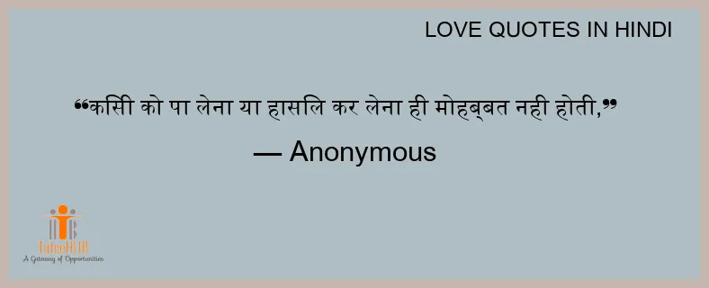 किसी को पा लेना या हासिल कर लेना ही मोहब्बत नही होती,